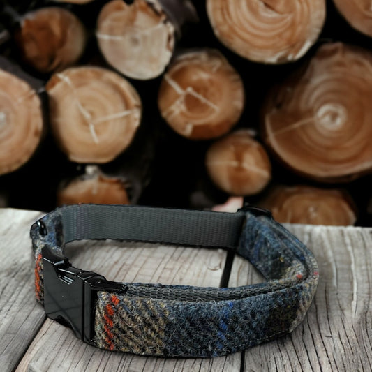 Sherlock Grey Herringbone Harris Tweed Dog Collar