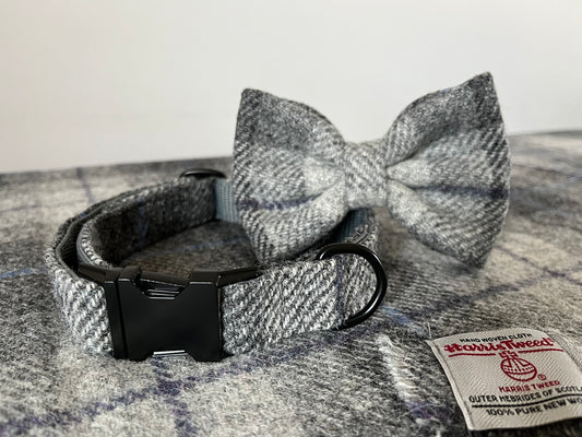 Smoke Grey Check Harris Tweed Dog Collar & Bow-Tie Set