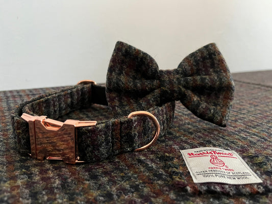 Fireside Houndstooth Harris Tweed Dog Collar & Bow-Tie Set
