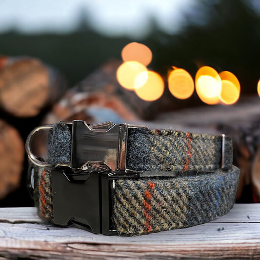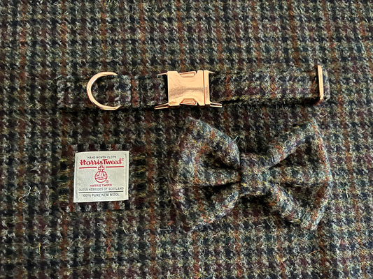 Tarbert Check Harris Tweed Dog Collar & Lead Set (with optional Bow-tie)