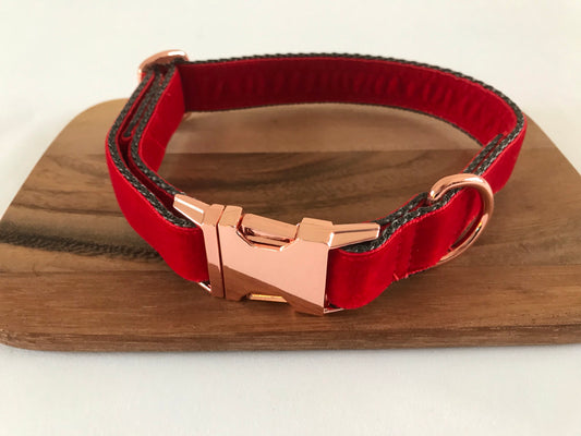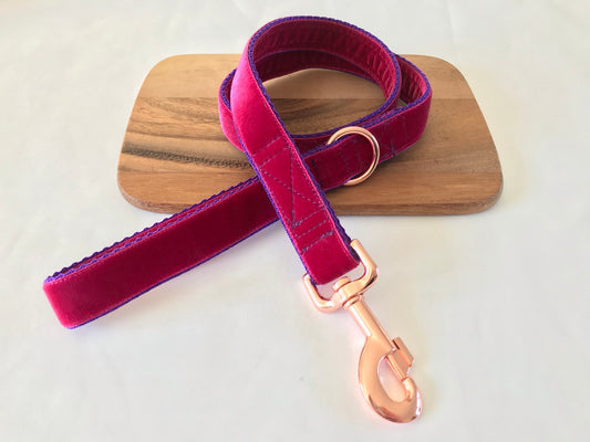 Fuchsia Pink Velvet Dog Collar & Lead Set